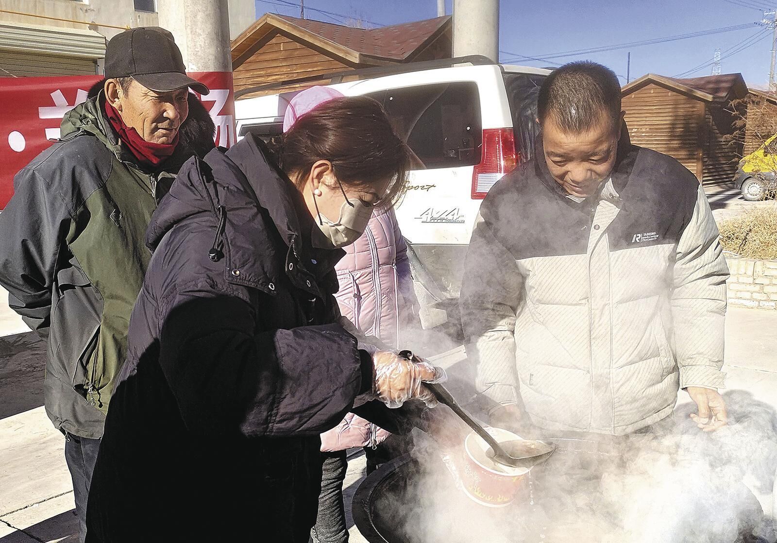 领取免费羊肉汤。齐延迪 苏烽 摄
